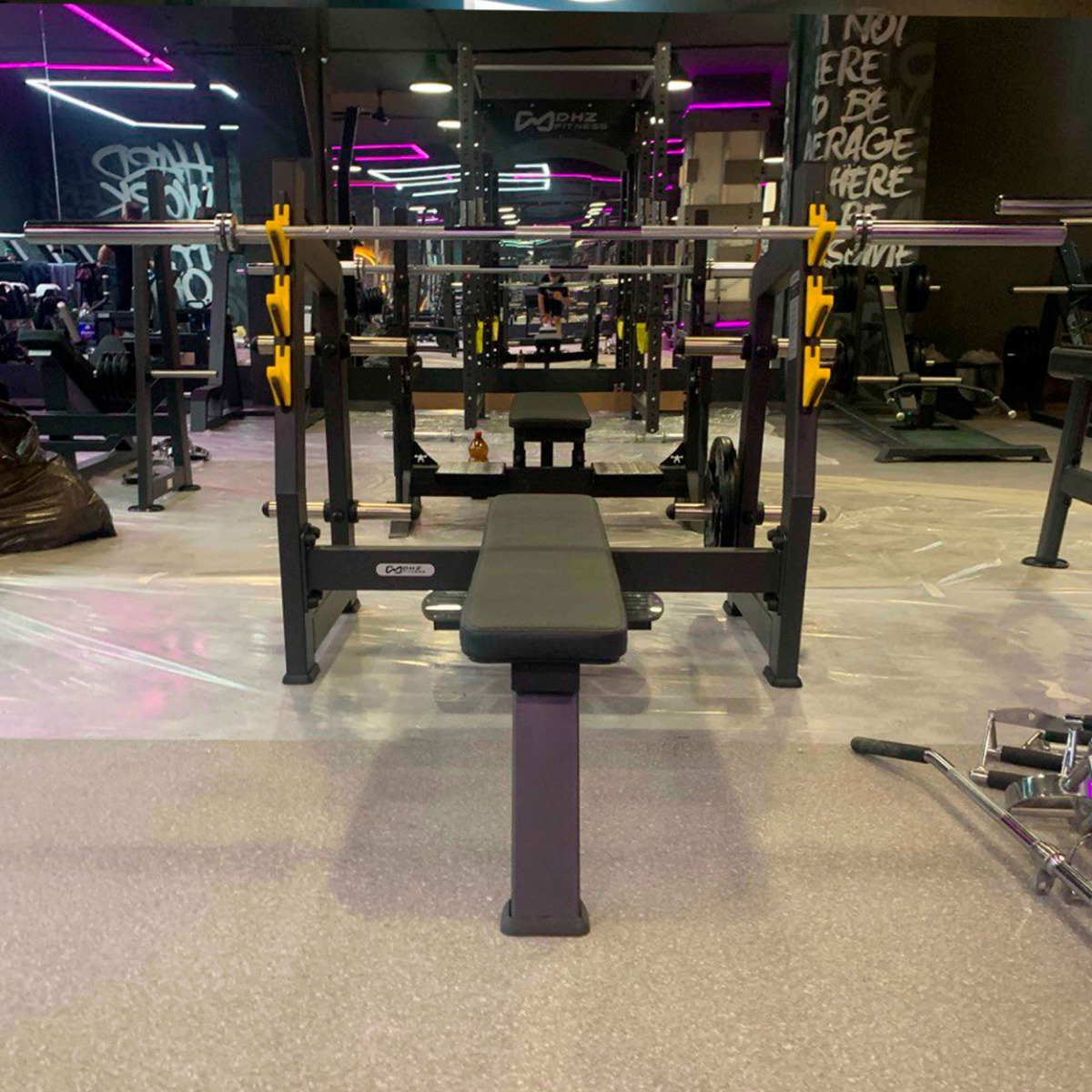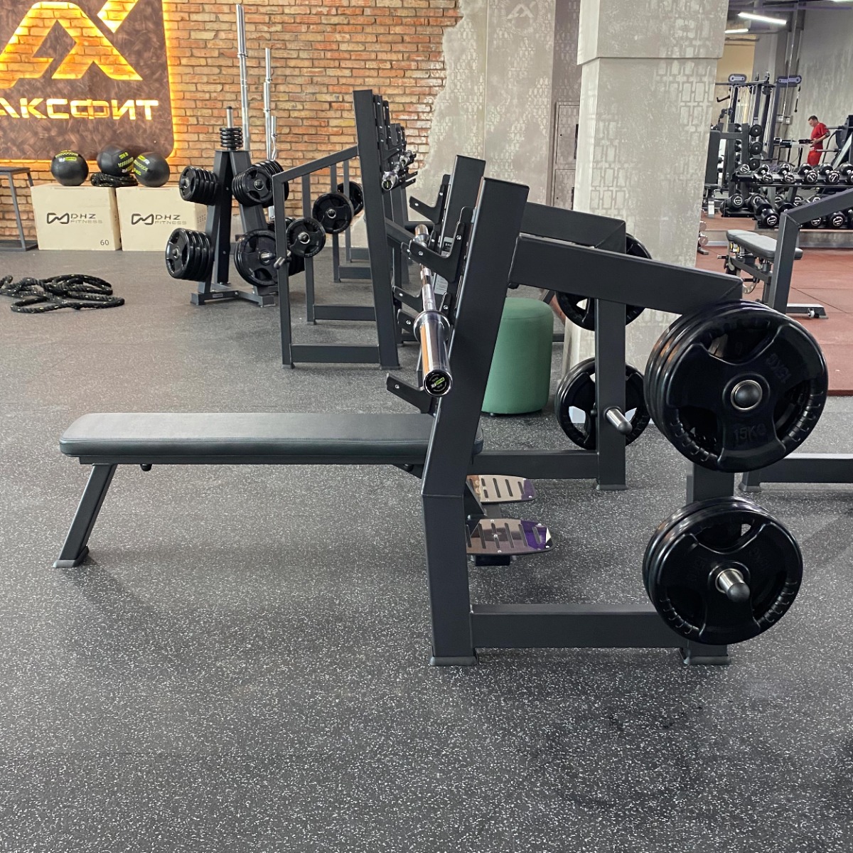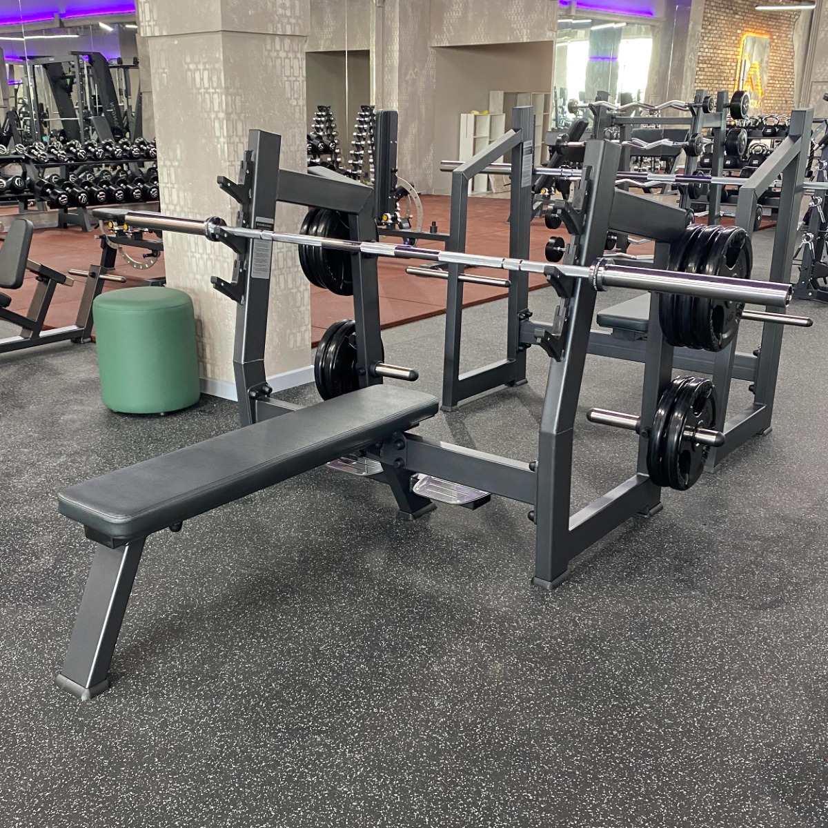 Профессиональный тренажёр для коммерческого использования A3043М Скамья-стойка для жима штанги лёжа с площадкой для страховки предназначен для выполнения базового упражнения – жима штанги в горизонтальном положении. Конструкция обеспечивает устойчивость и безопасность при работе с большими весами, а встроенная площадка для страховки позволяет выполнять упражнения под контролем ассистента или тренера.