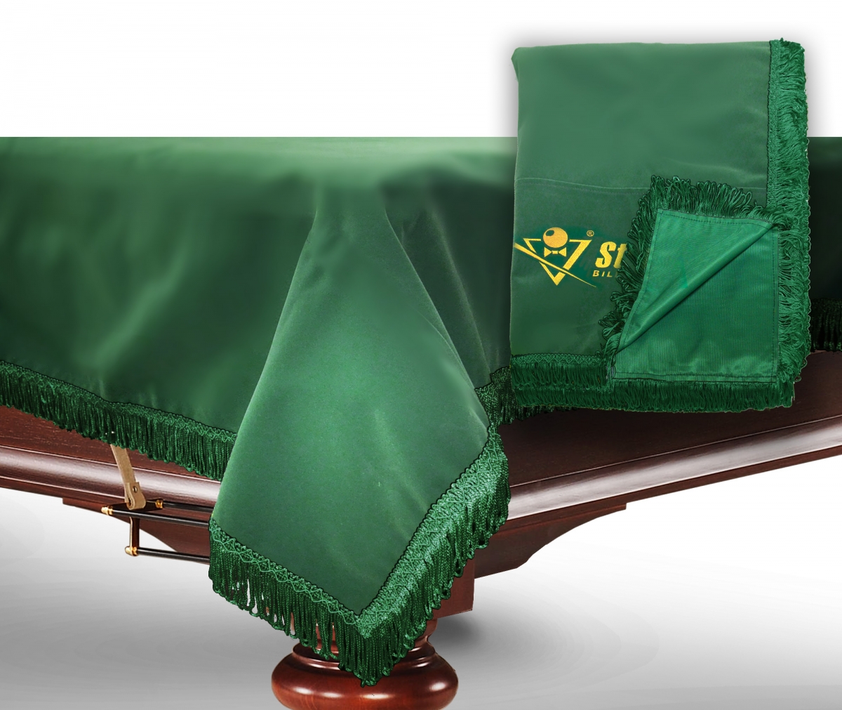 Чехол для б/стола 12-3 (зеленый с зеленой бахромой, с логотипом)