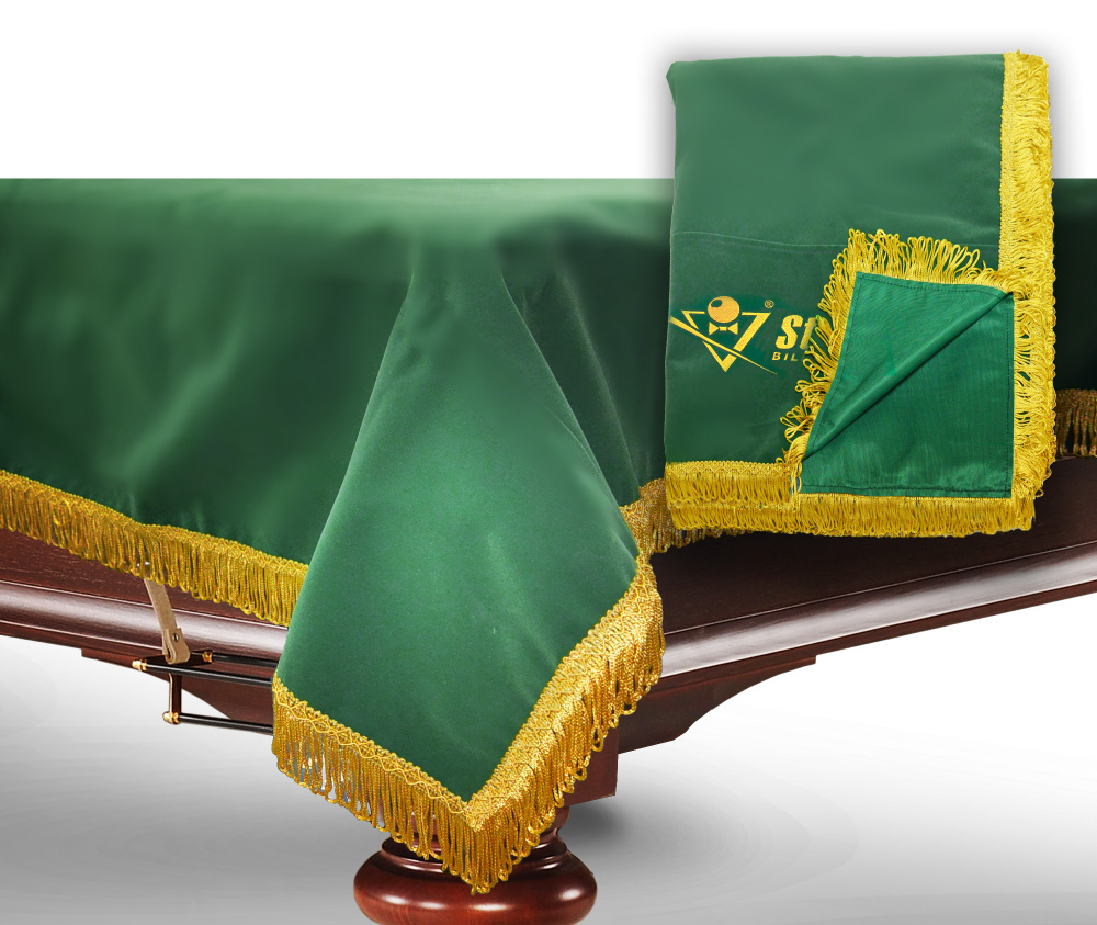 Чехол бархатный, обрамленный бахромой, надежно предохраняет бильярд от внешних воздействий.