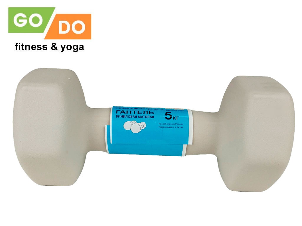 Гантель GO DO в виниловой матовой неопреновой оболочке. Вес 5 кг. (Белый)