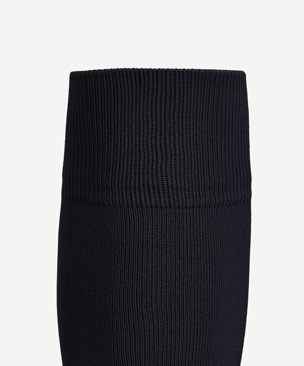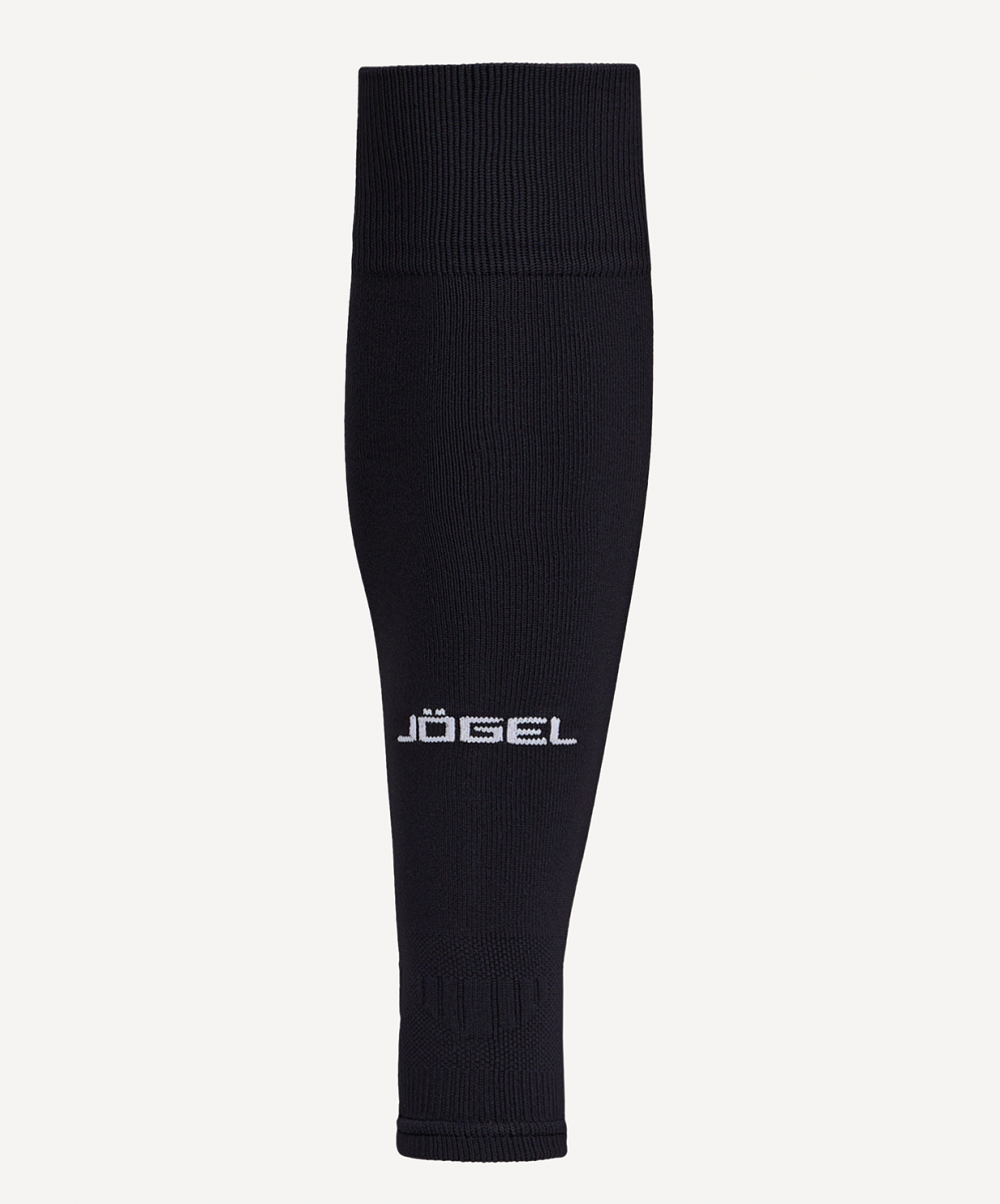 Двубортная высокая резинка удерживает спортивные гетры от сползания. На фронтальной части гетр расположен логотип бренда Jögel.