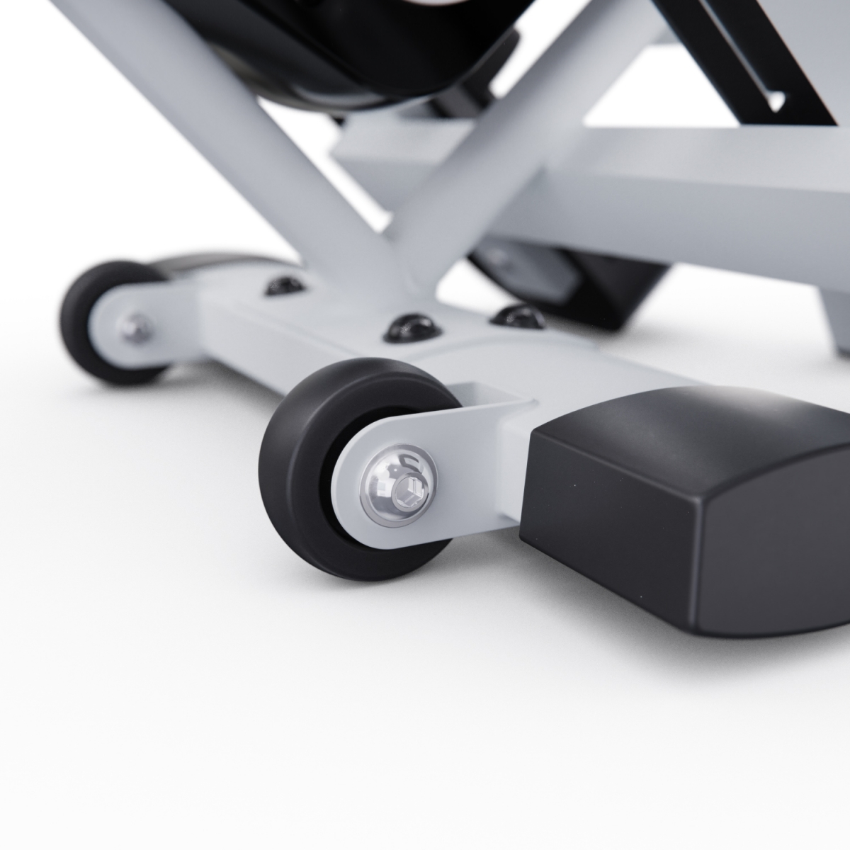 В рабочем состоянии гребной тренажер кардио имеет размеры 180 х 47 х 85 см, а также имеет компактные размеры в сложенном виде (98 х 47 х 137,5 см) и транспортировочные ролики, что позволяет удобно его хранить и легко перемещать его по дому.