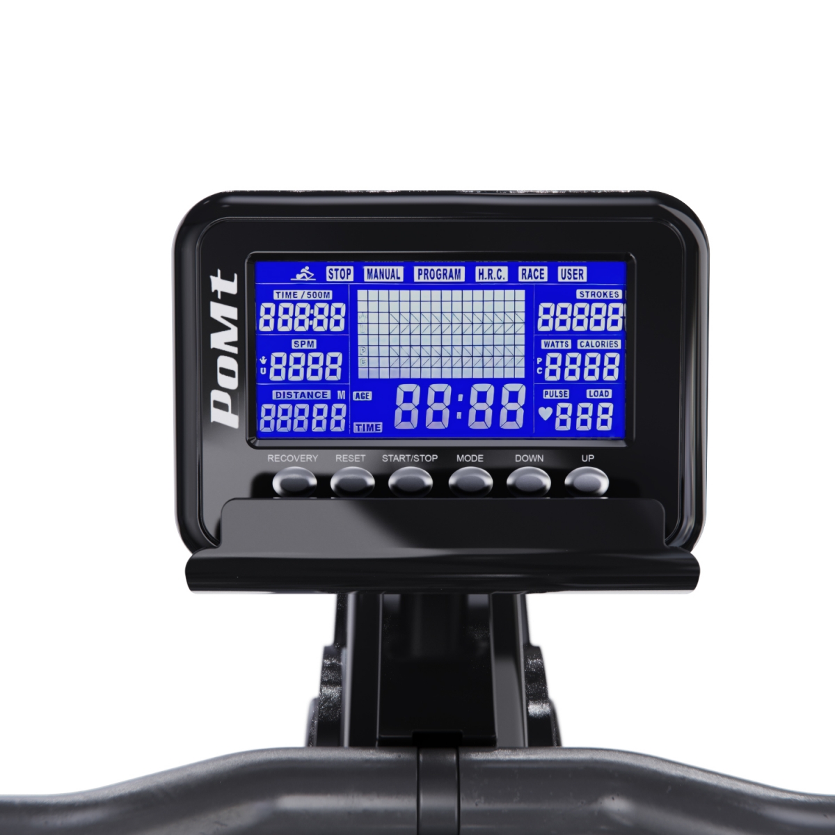 Монохромный LCD-дисплей с подсветкой отображает основные параметры тренировки, такие как время, скорость, расстояние, гребки, а 12 встроенных программ помогут вам разнообразить тренировки. Размер консоли 11,8 х 17,8 х 4,3 см. В комплект поставки входят 2 батарейки типа АА.