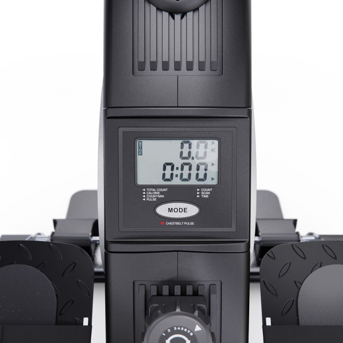 Монохромный LCD-дисплей отображает основные параметры тренировки, такие как время, количество гребков, общее количество гребков и калории, а также имеет режим сканирования. Размер консоли 10,5 х 11 х 3 см.