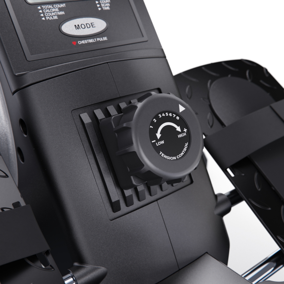 Кардиотренажер для ног и рук оснащён маховиком весом 4 килограмма и имеет магнитную систему нагрузки, что обеспечивает плавный и тихий ход. 8 уровней нагрузки.