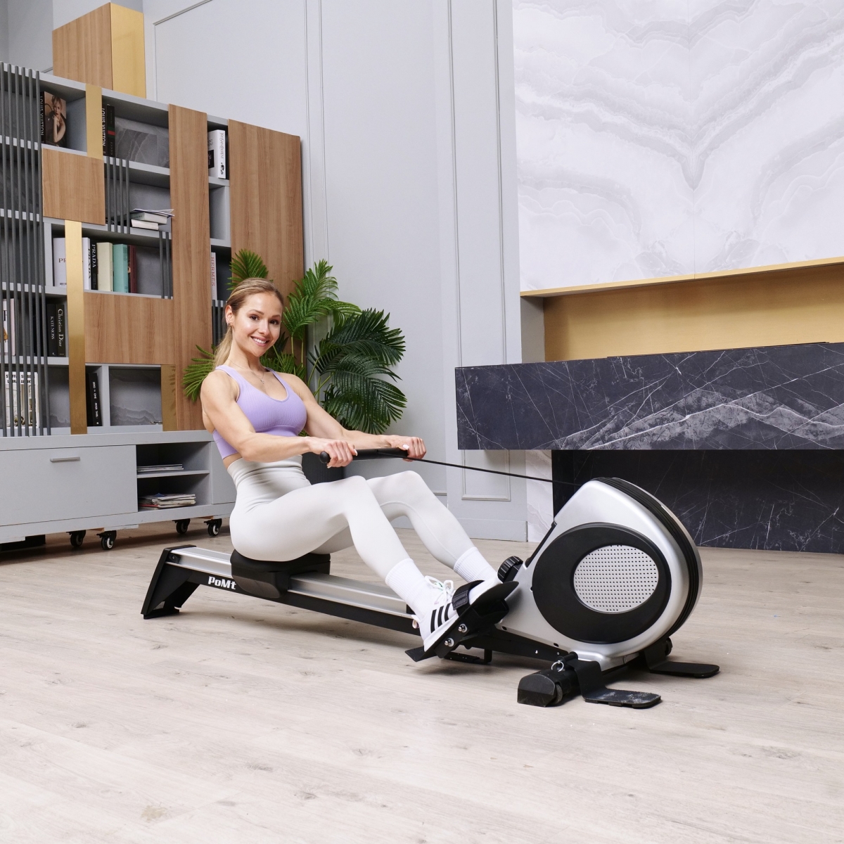 Гребной тренажёр DFC PoMt серого цвета — отличный выбор для домашних тренировок! Максимальный вес пользователя составляет 120 килограммов, что делает тренажер подходящим для людей с разной физической подготовкой. Гребной тренажёр для дома идеально подходит для укрепления мышц верхней части тела и развития выносливости.