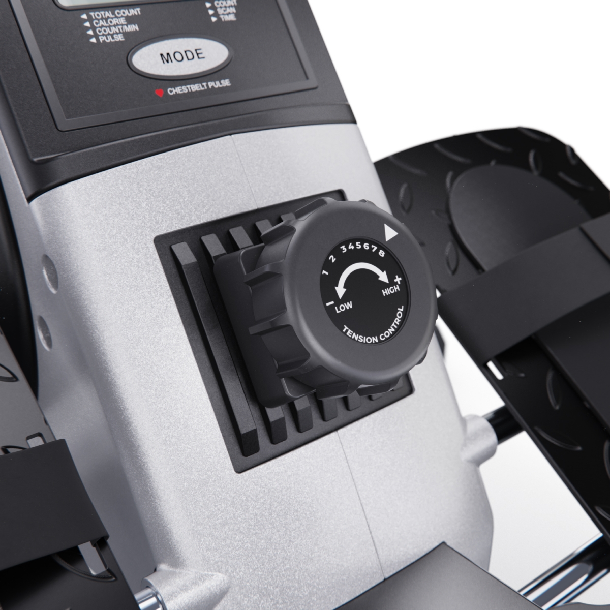 Кардиотренажер для ног и рук оснащён маховиком весом 4 килограмма и имеет магнитную систему нагрузки, что обеспечивает плавный и тихий ход. 8 уровней нагрузки.