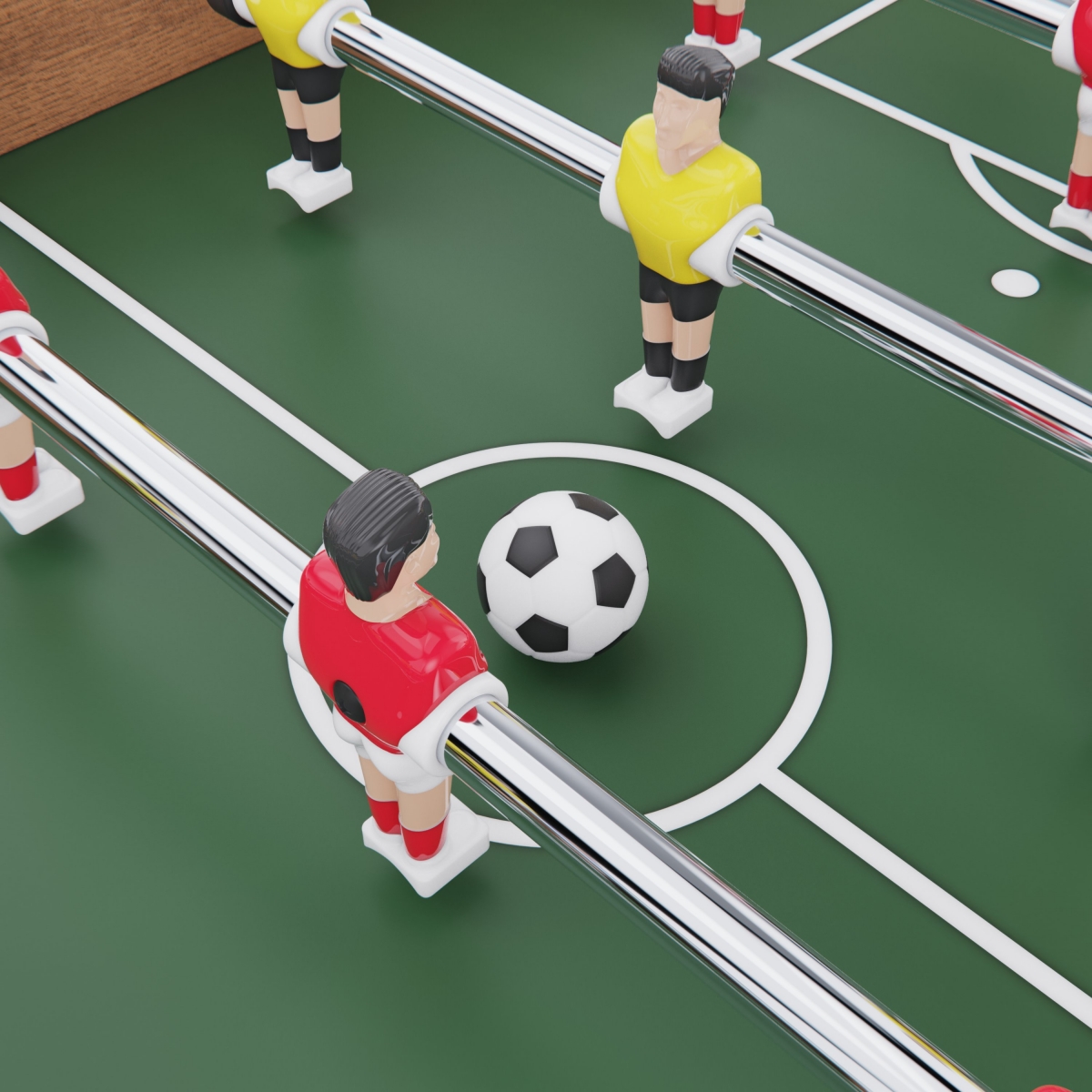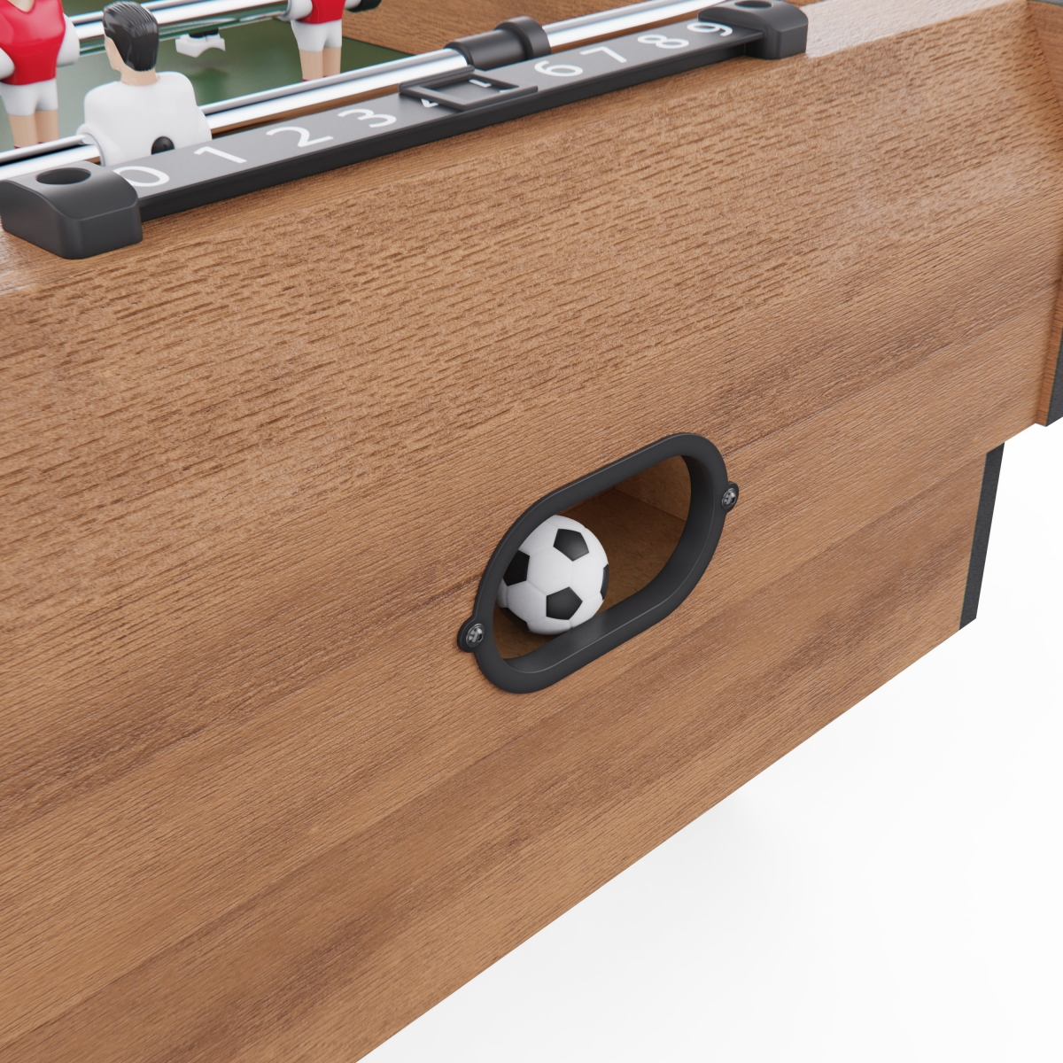 Игровой стол выполнен из МДФ — практичного и устойчивого к нагрузкам материала. Конструкция дополнена ножками высотой 13 см, благодаря чему стол устойчиво располагается на поверхности и сохраняет баланс во время игры. Такая высота делает модель удобной для размещения на столе или другой ровной основе, обеспечивая комфортный игровой процесс.