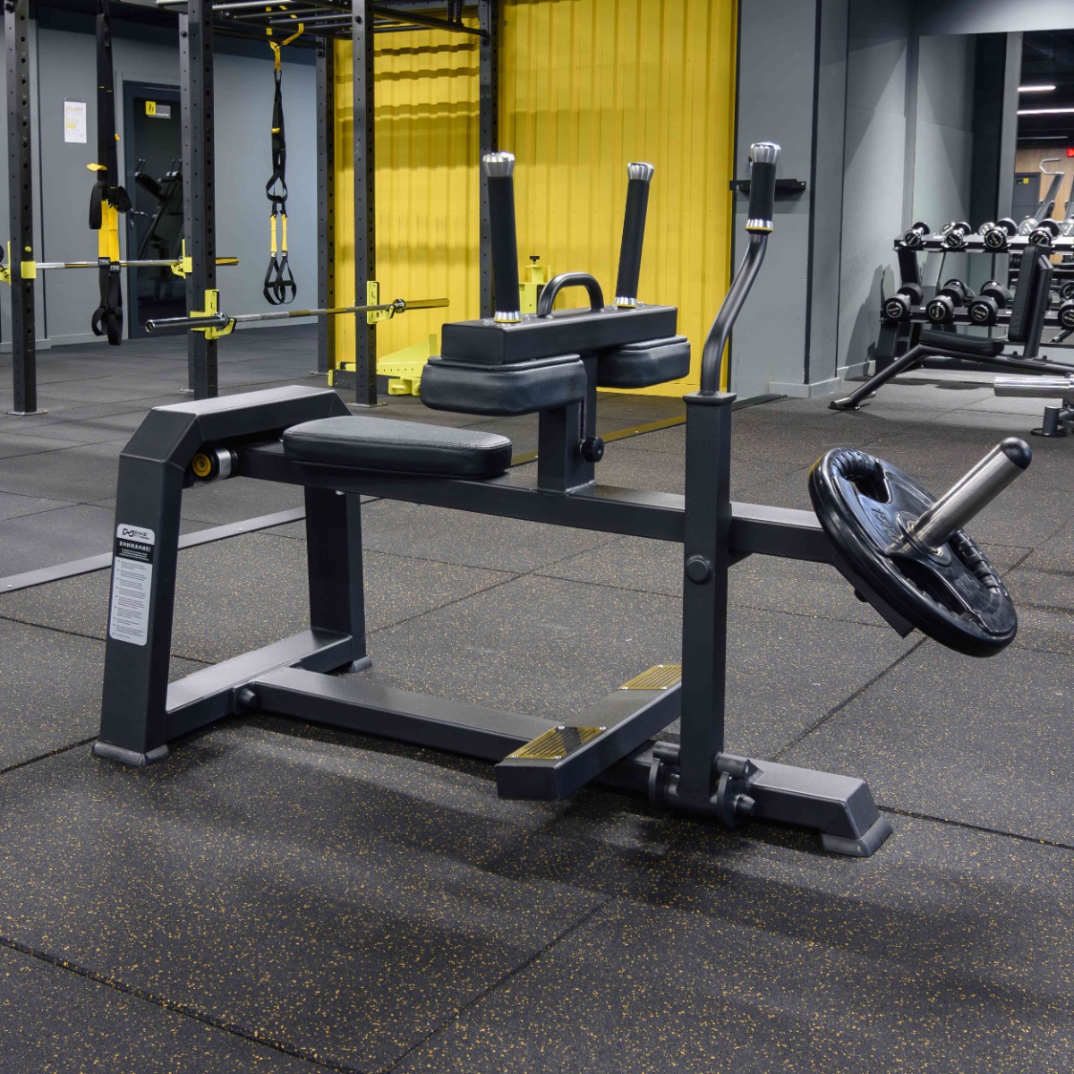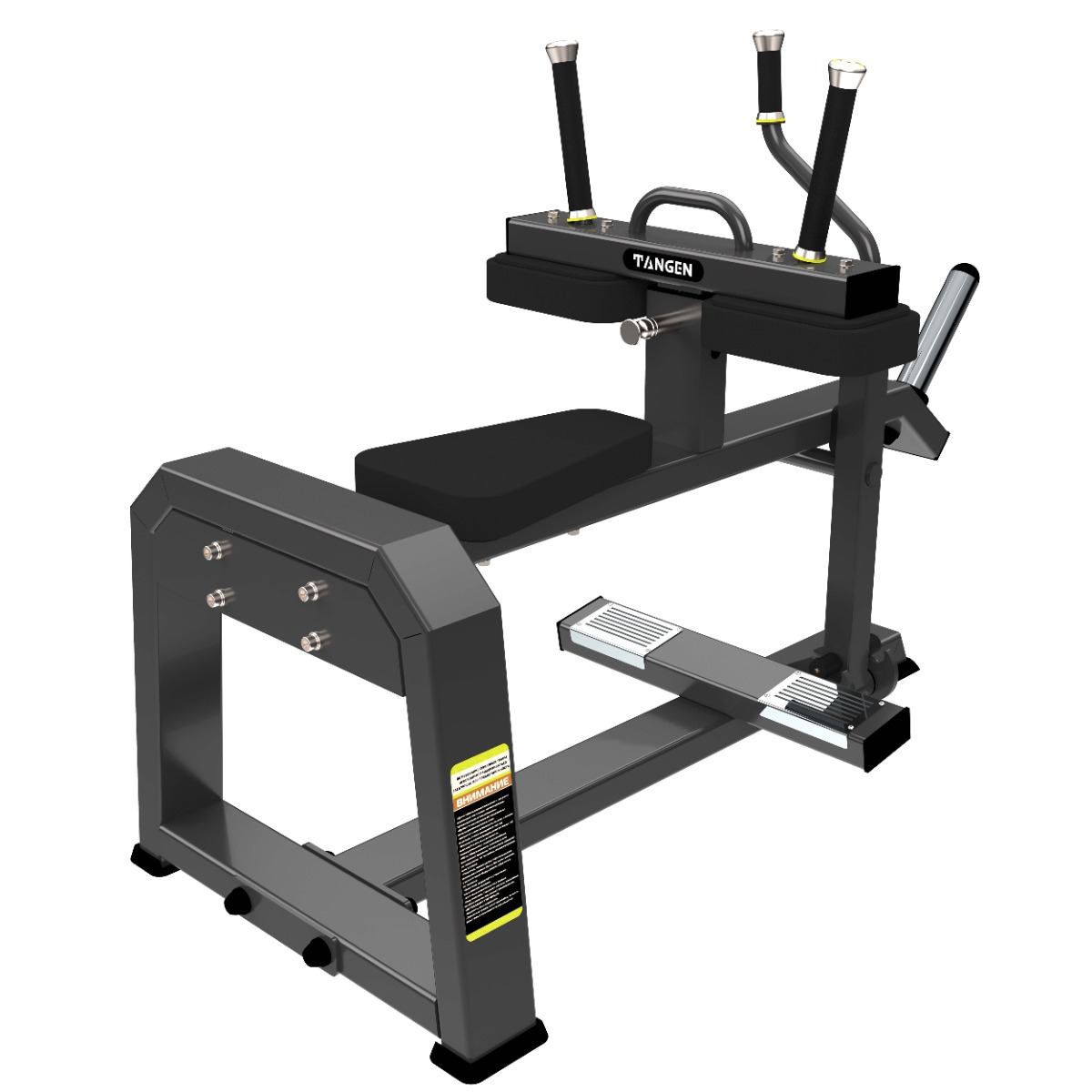 Профессиональный тренажёр для коммерческого использования A3062 Икроножные (сидя) предназначен для изолированной тренировки мышц голени, в первую очередь камбаловидной мышцы, расположенной под икроножной. Упражнение выполняется в положении сидя, что исключает нагрузку на позвоночник и позволяет эффективно развивать силу и объём нижней части голени.