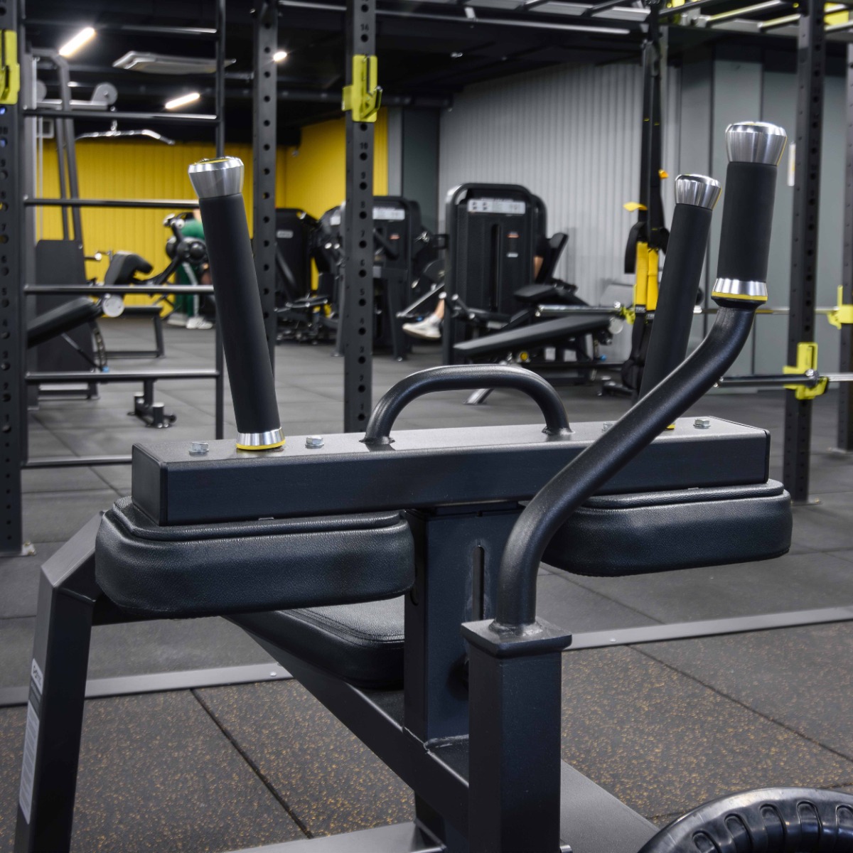 Две рукояти установлены на раме над подушками и регулируются одновременно с их положением, одна рукоять расположена на отжимном рычаге и предназначена для удобного входа и выхода из упражнения.