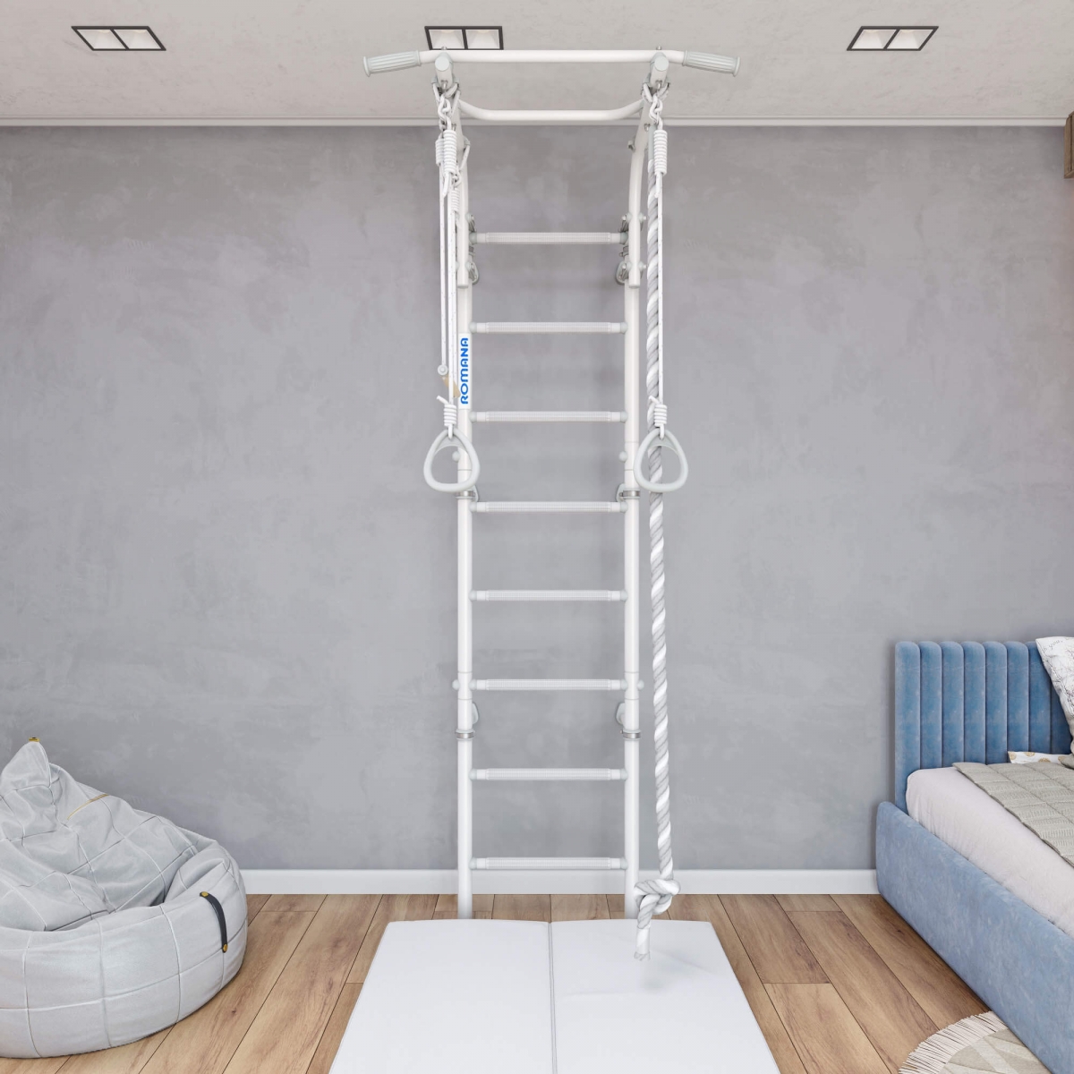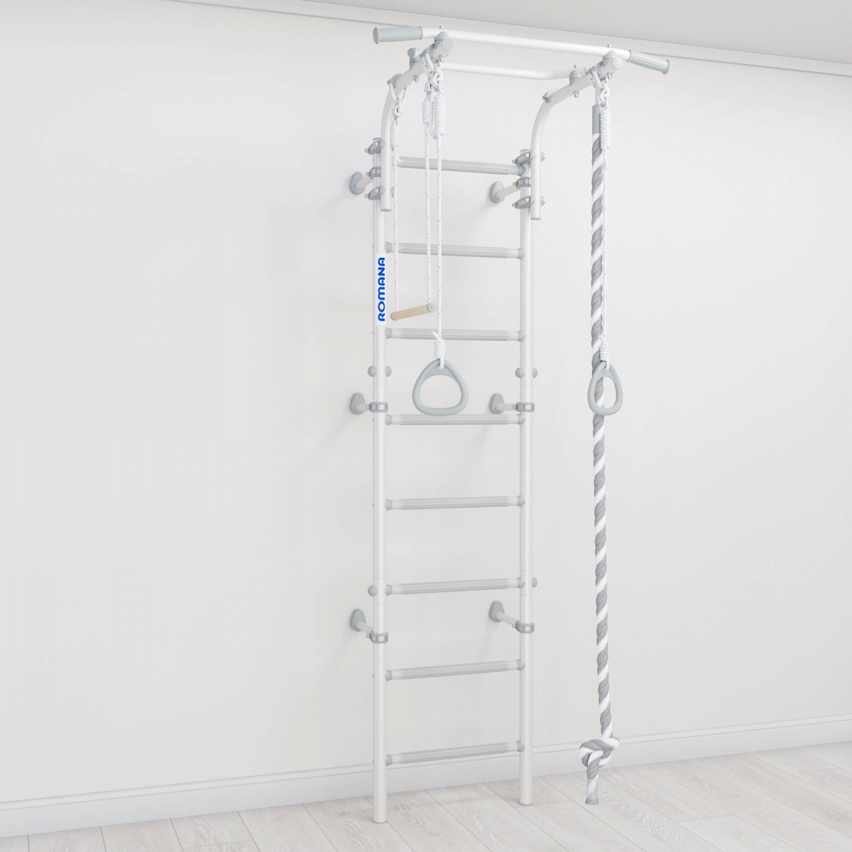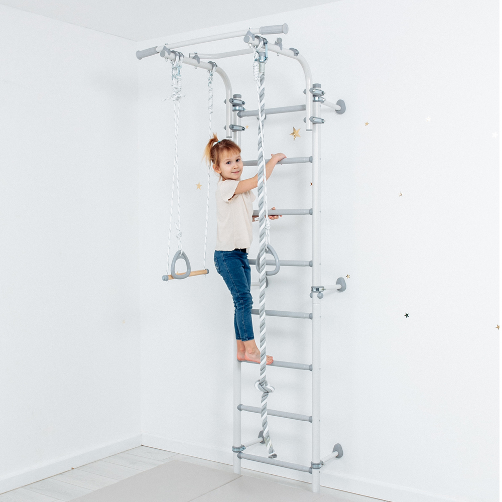 Детский спортивный комплекс ROMANA Next Pastel - это стильный редизайн самой популярной модели в линейке шведских стенок. Спокойные пастельные цвета, белый и серый, хорошо впишутся в современный интерьер.