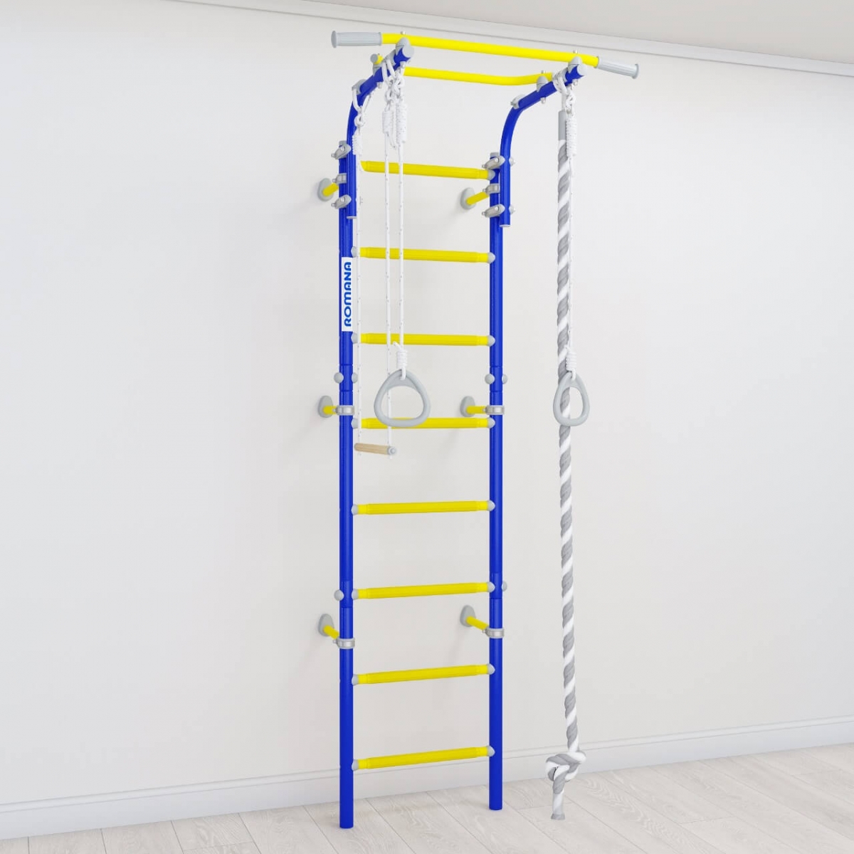 Детский спортивный комплекс ROMANA Next Top - настоящий хит в линейке шведских стенок. Он легко собирается и фиксируется к стене с помощью подвижных крепежей. Они позволяют зафиксировать стенку в различных положениях, включая угловое. Можно рационально расположить крепеж на той высоте, которая вас устроит, и избежать попадания в проводку или полости в стене.
