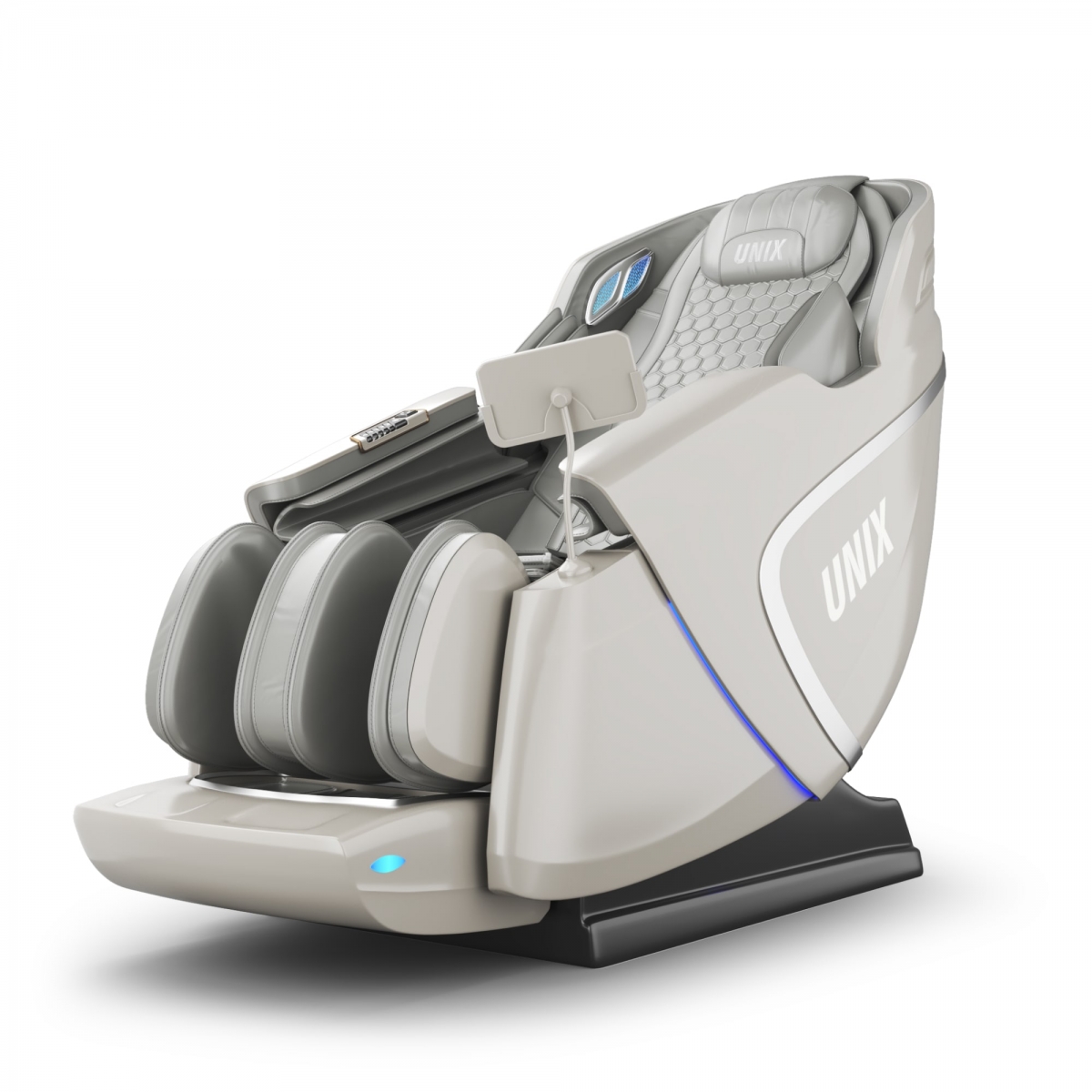 Откройте для себя новое измерение комфорта и заботы о здоровье с революционным массажным креслом UNIX Аура, оборудованным передовыми технологиями 4D манипулятора и датчиками анализа здоровья. Это не просто массажное кресло — это ваш личный терапевт, который всегда готов прийти на помощь. Каркас спинки в лежачем положении выполнен по технологии скользящего рельса, что позволяет разместить изделие всего в 10 см от стены, максимально экономя пространством.