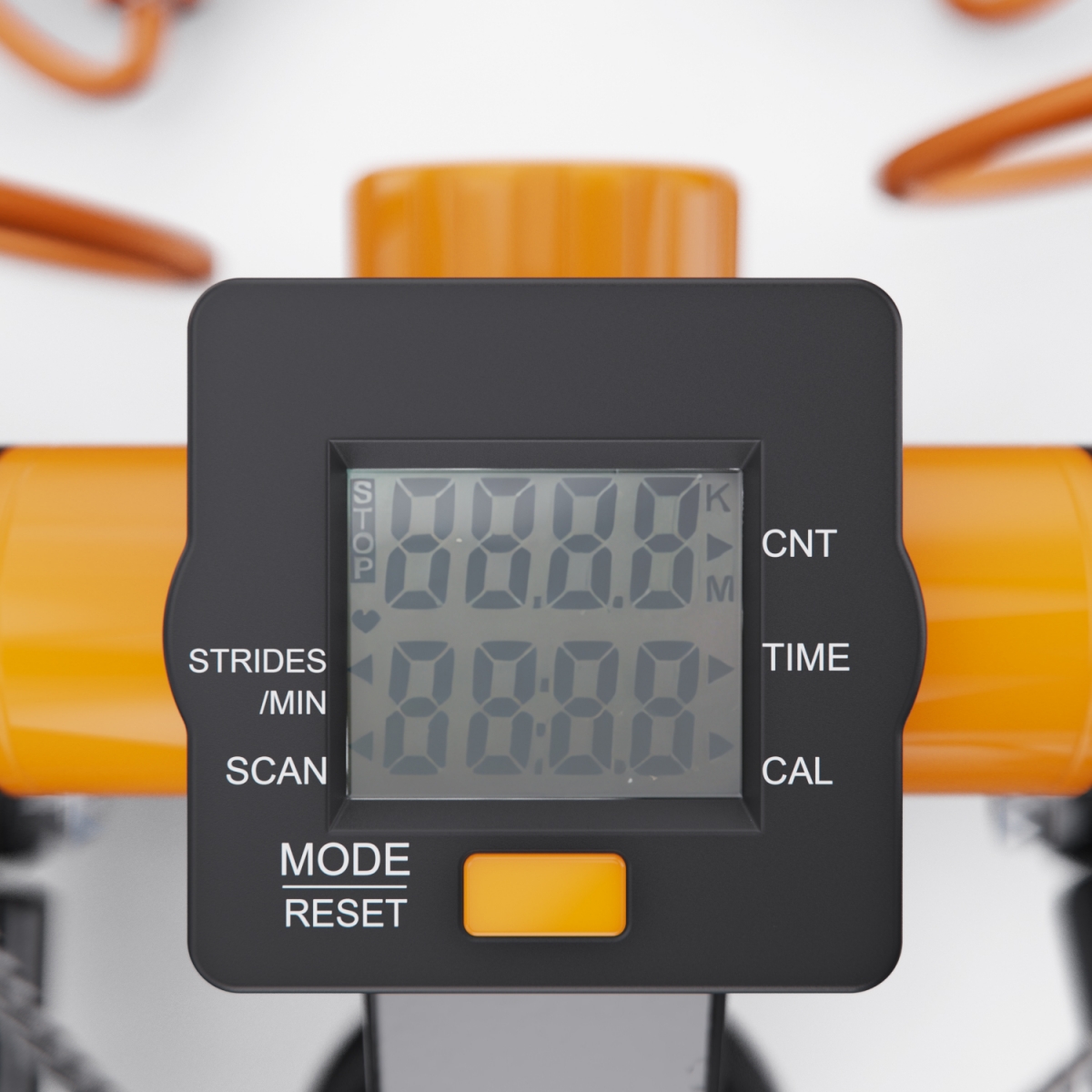 На монохромном LCD-дисплее отображаются все ключевые параметры: время тренировки, количество шагов, шагов в минуту и сожжённые калории. Это позволяет легко отслеживать прогресс и контролировать эффективность каждого занятия. В комплекте 1 батарейка типа LR44.