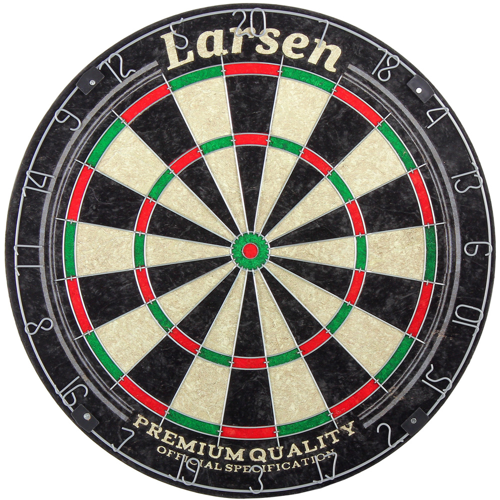 Мишень для игры в дартс Larsen DG51004Т - это профессиональная мишень начального уровня. Дартс профессиональный соответствует требованиям международных федераций, изготовлен из Сизаля (спрессованные волокна агавы). Проволока, разделяющая сектора - треугольная, что позволяет уменьшить количество "отскоков" дротиков. Номера секторов легко вращаются по фронту, что облегчает поворачивание мишени для равномерного распределения износа игровой поверхности. Мишень для игры в дартс профессиональный изготовлена в рамках официальных размеров WDF. Центр мишени закреплен без использования скоб. Дартс взрослый из сизаля 45 см идеален как для клубов, развлекательных центров, проведения спортивных турниров, так и для домашнего использования. Внимание, дартс БЕЗ дротиков! Большой дартс – увлекательная спортивная игра для взрослых и детей, развивает ловкость, внимательность, мелкую моторику и мышление. Краткие правила. Мишень состоит из 20 сегментов, каждый имеет свое цифровое обозначение от 1 до 20. В центре круга обозначено «яблочко», поражение которого приносит игроку 50 очков. Зеленая область вокруг центра приносит в 25 очков, попадание в узкую часть внешнего круга удваивает очки, попадание в узкую часть внутреннего круга утраивает выигрыш. Центр мишени крепится на уровне 173 см от пола, расстояние от мишени до игрока должно быть не менее 237 см. Дальнейший ход игры зависит от выбранного варианта розыгрыша. Мишень для игры в дартс Larsen из сизаля станет отличным подарком на любой праздник.