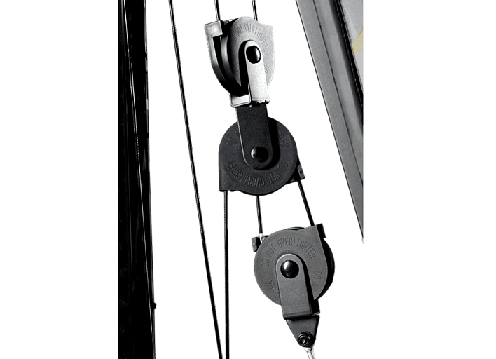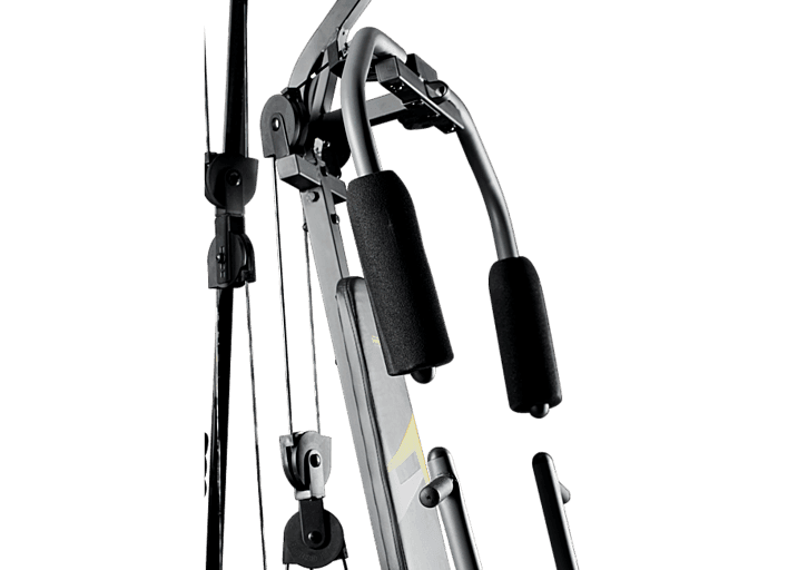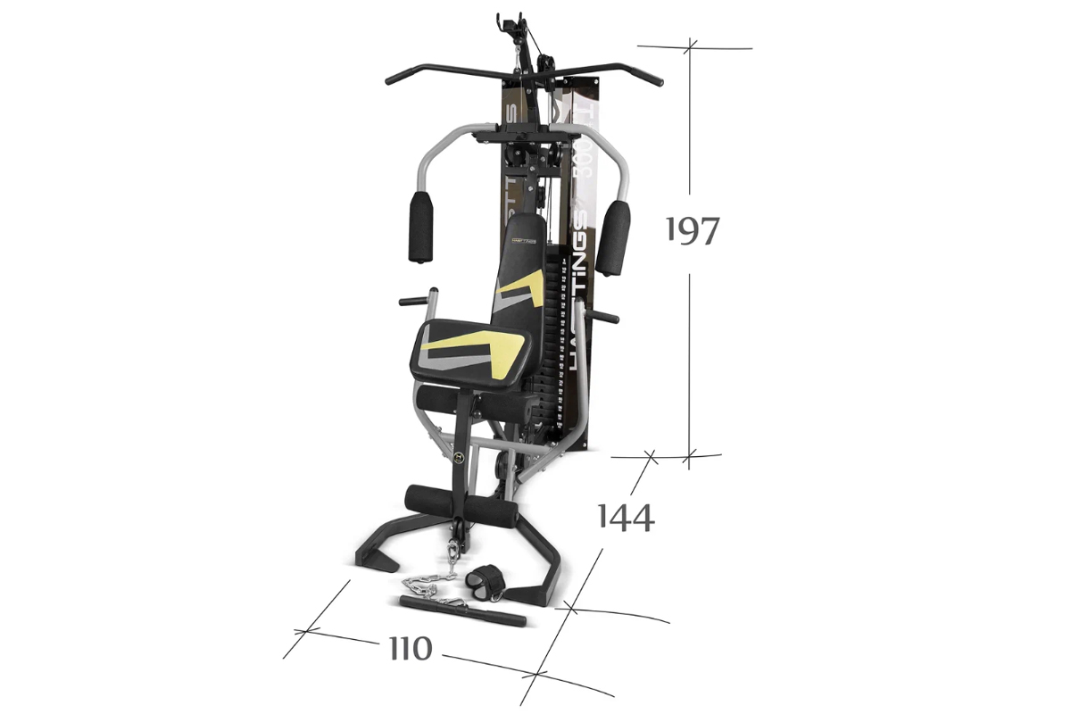 - Пластиковые панели, прочный стальной трос, весовой стек с виниловом покрытием