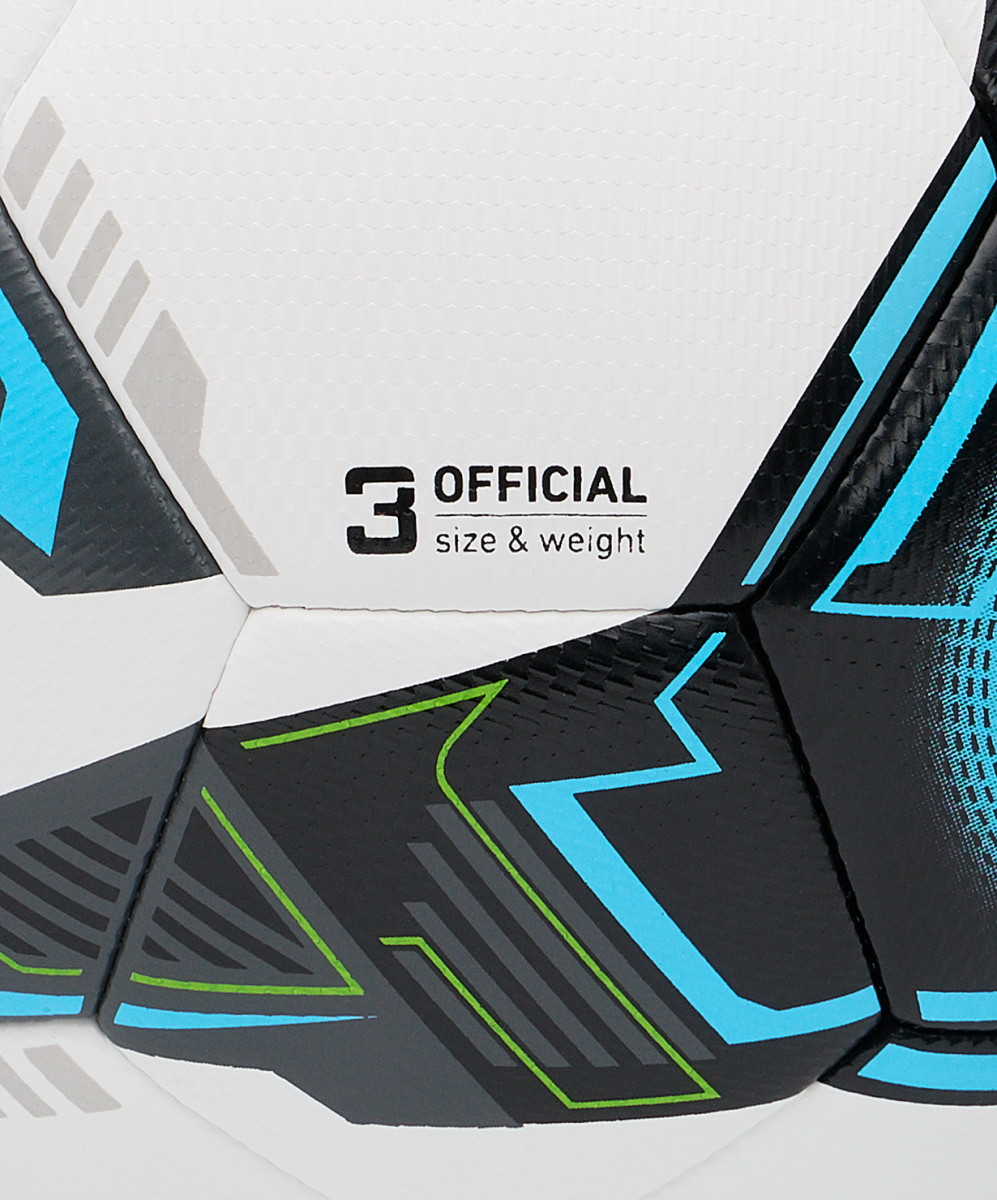 Team №3 – детский футбольный мяч из линейки Pro training. Данная модель обладает хорошими игровыми и прочностными характеристиками. Мяч выполнен по технологии цифровой машинной сшивки (DMS), благодаря чему снаряд износостойкий и упругий, а давление внутри распределяется равномерно. Поверхность мяча сделана из синтетической кожи (полиуретана) толщиной 0,7 мм. Подкладочный слой выполнен из специальной пены толщиной 5,0 мм, которая позволяет с комфортом использовать мяч даже при минусовой температуре. Текстура поверхности изделия обеспечивает максимальный контроль мяча в любую погоду. Изготовлен в традиционной конструкции из 32 панелей.