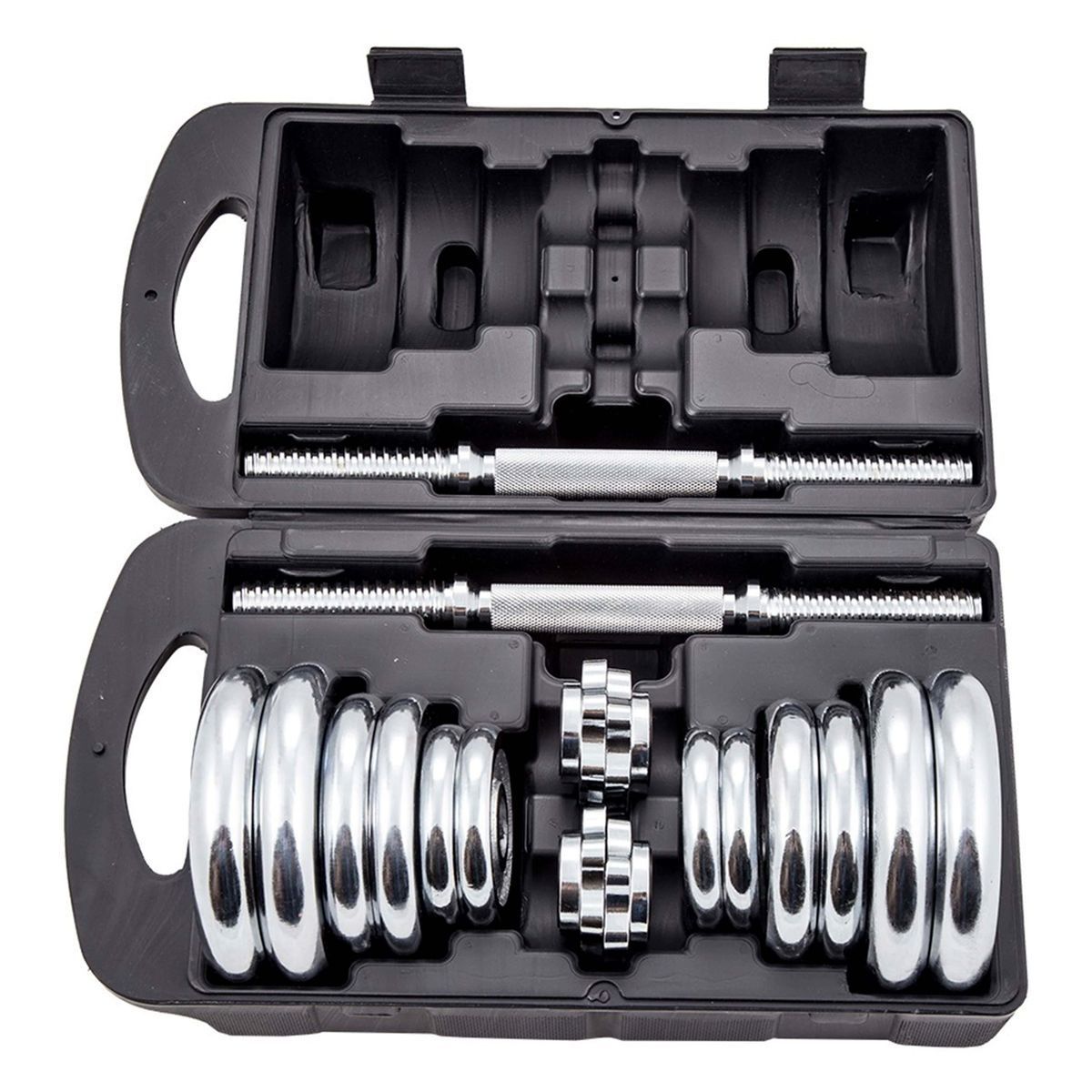 Набор гантелей в кейсе 20 кг с эксплуатационными характеристиками коммерческого оборудования предназначен преимущественно для домашних тренировок за счёт компактного кейса для хранения и транспортировки и сборной конструкции.