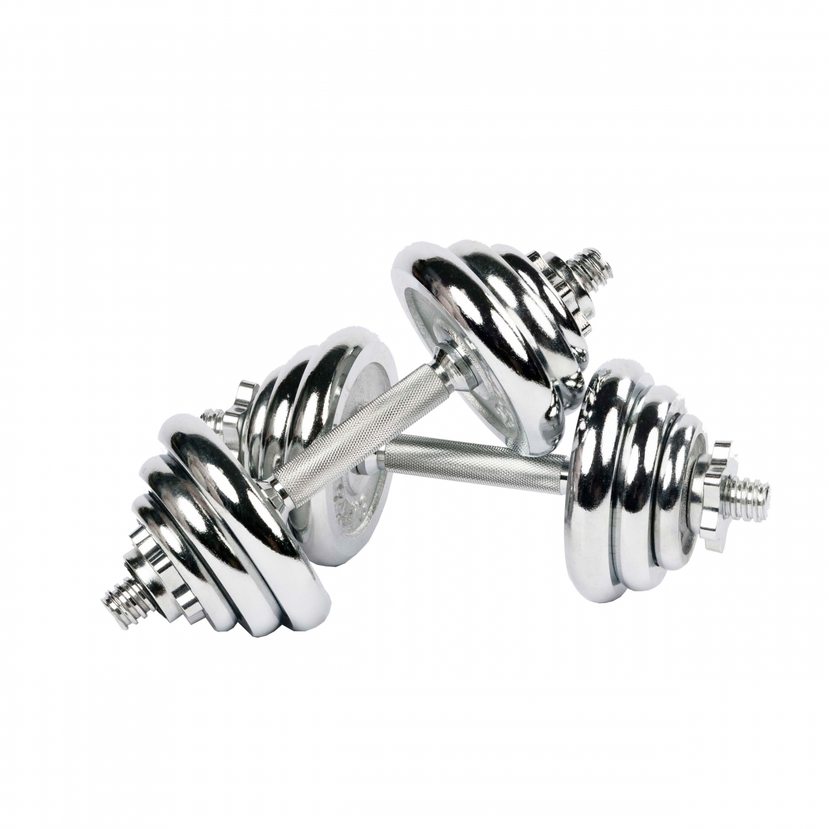 Весовые диски выполнены из металла с зеркальным хромовым покрытием.