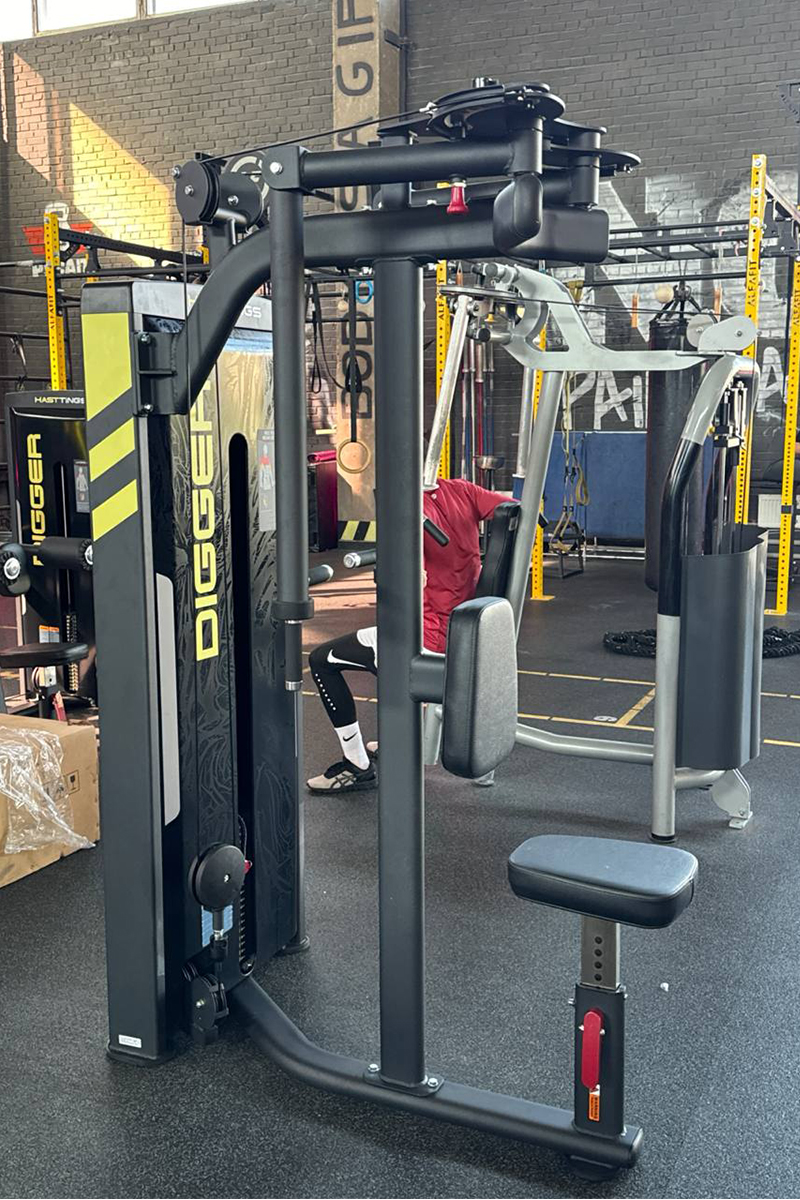 - Разнообразная биомеханика[Пять уровней регулировки натяжения на упражнении пек-флай.]