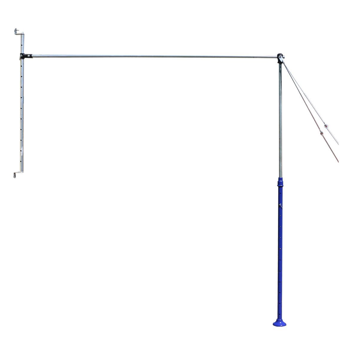 Регулировка степени натяжения растяжек обеспечивается талрепами. Стойка пристенная через два кронштейна крепится к стене. Регулировка стержня перекладины по высоте осуществляется перемещением, с одной стороны перемещением подвижного штока стойки, а с другой стороны перемещением подвижной головки по стойке пристенной, с фиксацией их соответственно фиксатором пружинным.