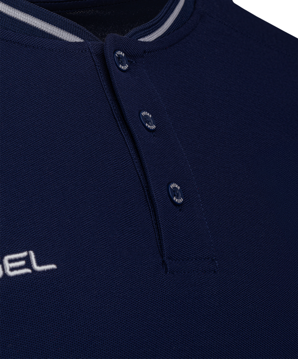 Поло с воротником стойкой и застежкой на 3 пуговицы. Смесовый материал высокого качества (65% хлопок 35% полиэстер) обеспечивает комфорт в носке, хорошо сохраняет форму, практически не нуждается в глажении и сохраняет первоначальный цвет даже после многочисленных стирок. Классическая фактура пике, атлетичный силуэт, контрастные детали на вороте и манжетах.