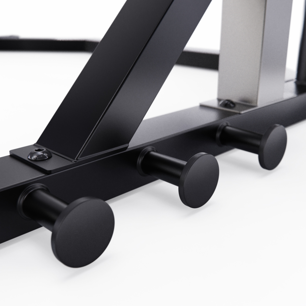 Регулируемые держатели для штанги помогут настроить тренажер под собственный рост, что делает ее идеальным выбором для пользователей разной комплекции. 2 пары посадочных втулок для хранения дисков диаметром 50 и 60 мм — обеспечивают удобное хранение веса и позволяют быстро подготовиться к тренировке.
