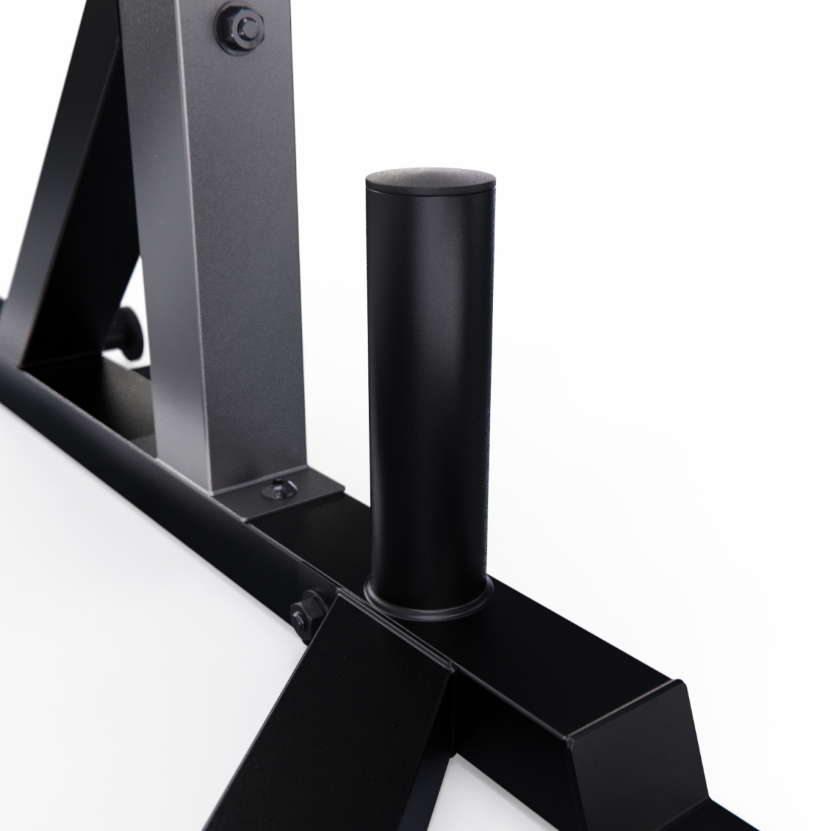 Максимальная нагрузка на стойку для приседаний 272 кг — она способна выдерживать значительные веса, что делает её подходящей для профессиональных атлетов и любителей тяжелой атлетики. Стойка изготовлена из прочной стали и покрыта порошковым напылением, что обеспечивает долговечность и надежность в эксплуатации.