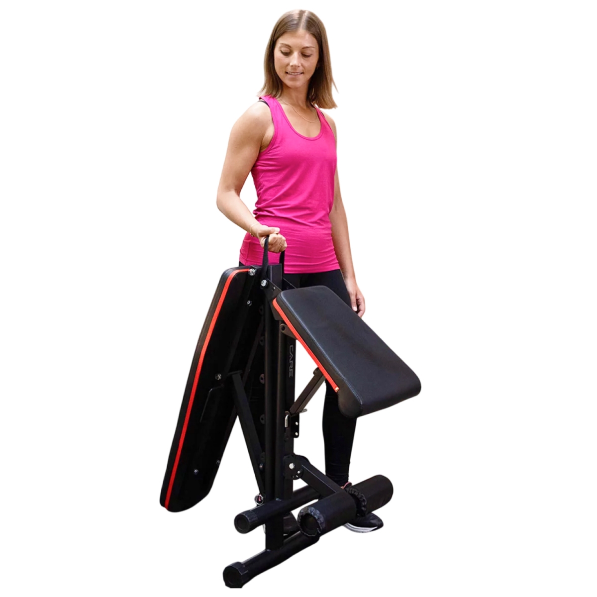 Скамья складная, легко собирается и занимает минимум места, а удобная ручка помогает переносить скамью, что делает ее идеальной для домашних условий.