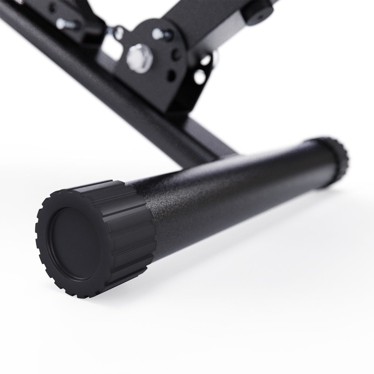 Покрытие из экокожи и набивка спинки и сиденья толщиной 45 мм обеспечивают комфорт во время тренировок, а уникальная форма сиденья скамьи для пресса позволяет снизить мышечную усталость и обеспечивает отличную поддержку ног. Нескользящие ножки обеспечивают надежное сцепление с полом и предотвращают скольжение во время тренировки, увеличивая безопасность.