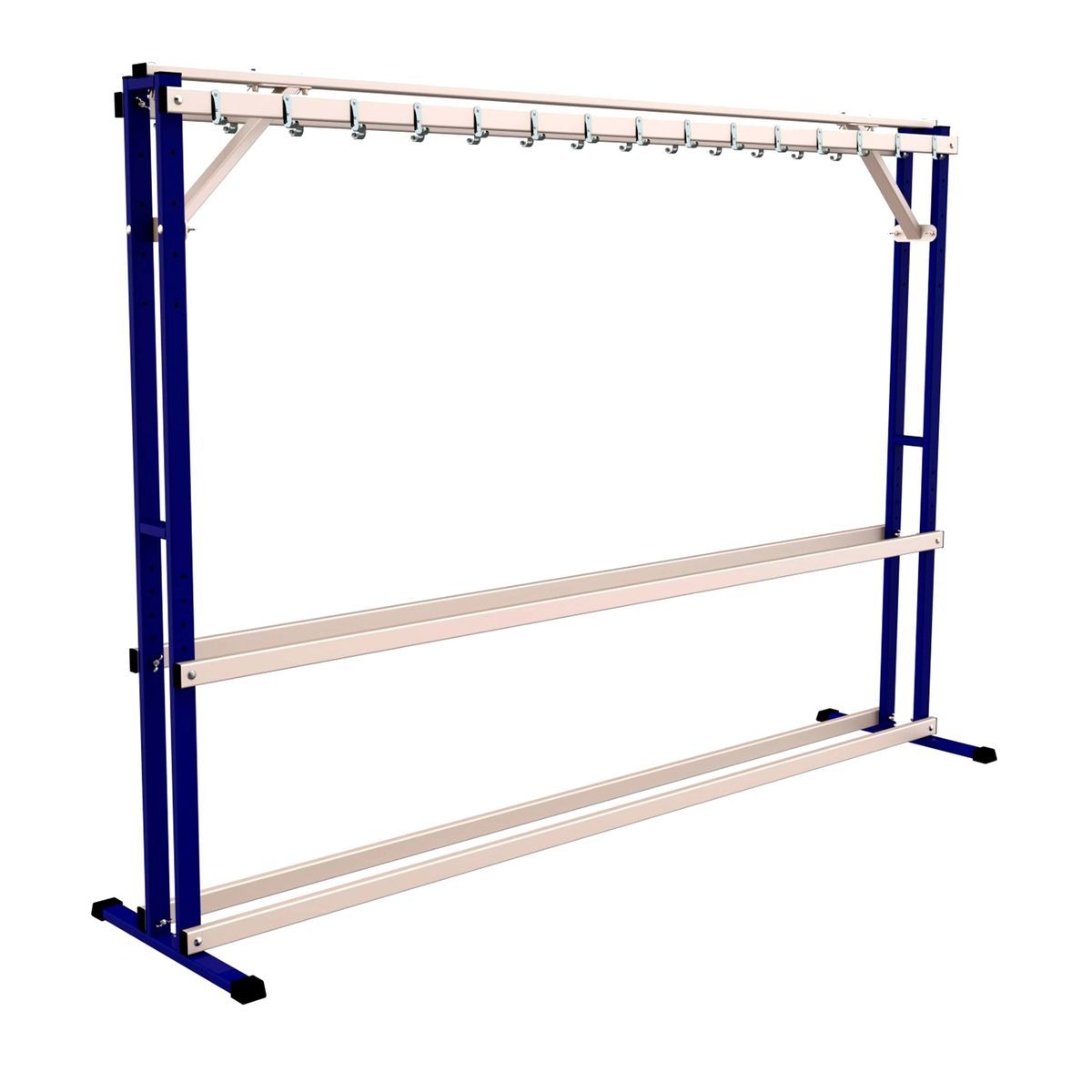 Стойка предназначена для хранения беговых лыж и лыжных палок в спортивных учреждениях, предприятиях и т.д., с возможностью регулировки по высоте, для разных типов лыж.