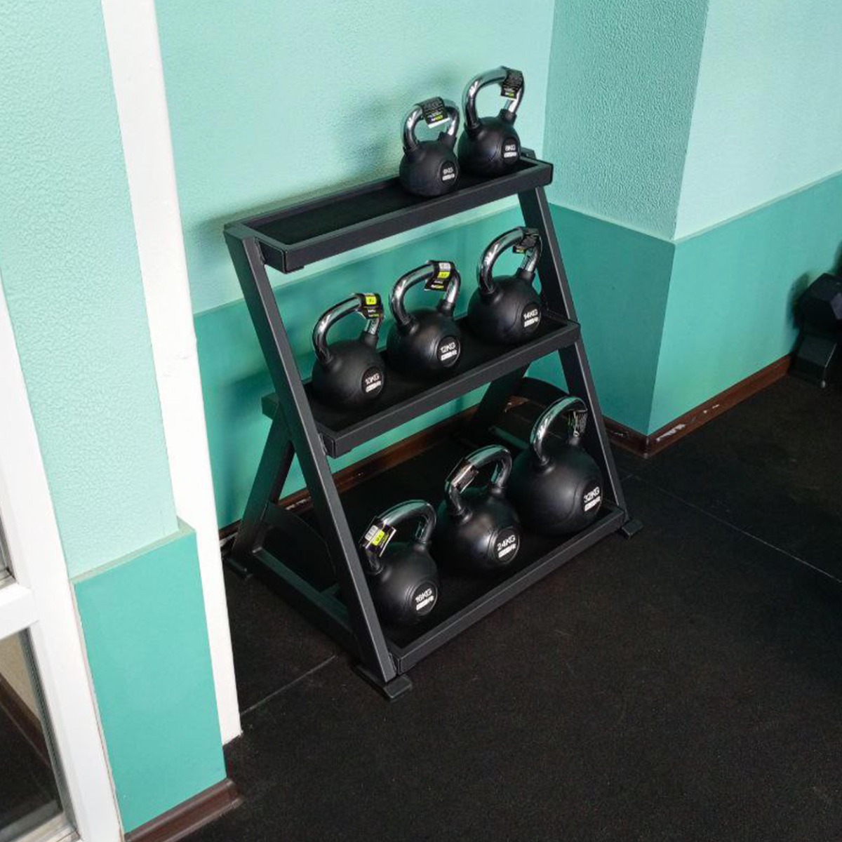 Стойка для гирь трехъярусная 2216 TANGEN стойка используется для хранения и удобного использования гирь. Представляет собой сборную металлическую конструкцию.