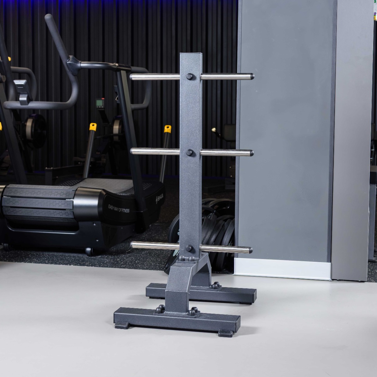 Профессиональная стойка для коммерческого использования A3054 Стойка для олимпийских дисков предназначена для компактного, безопасного и эргономичного хранения дисков с посадочным диаметром 50 мм. Конструкция обеспечивает удобный доступ к отягощениям и сохраняет порядок в зоне свободных весов.