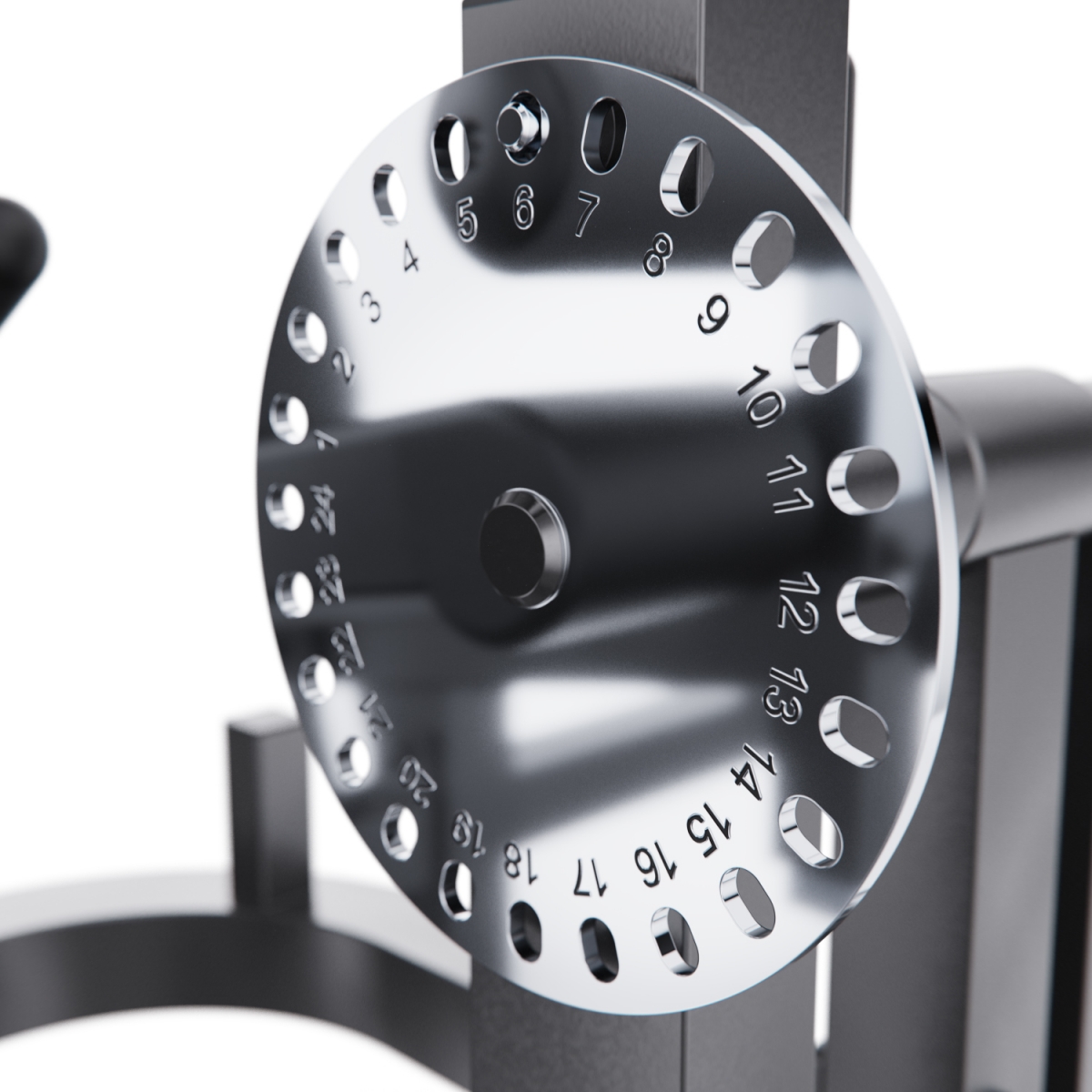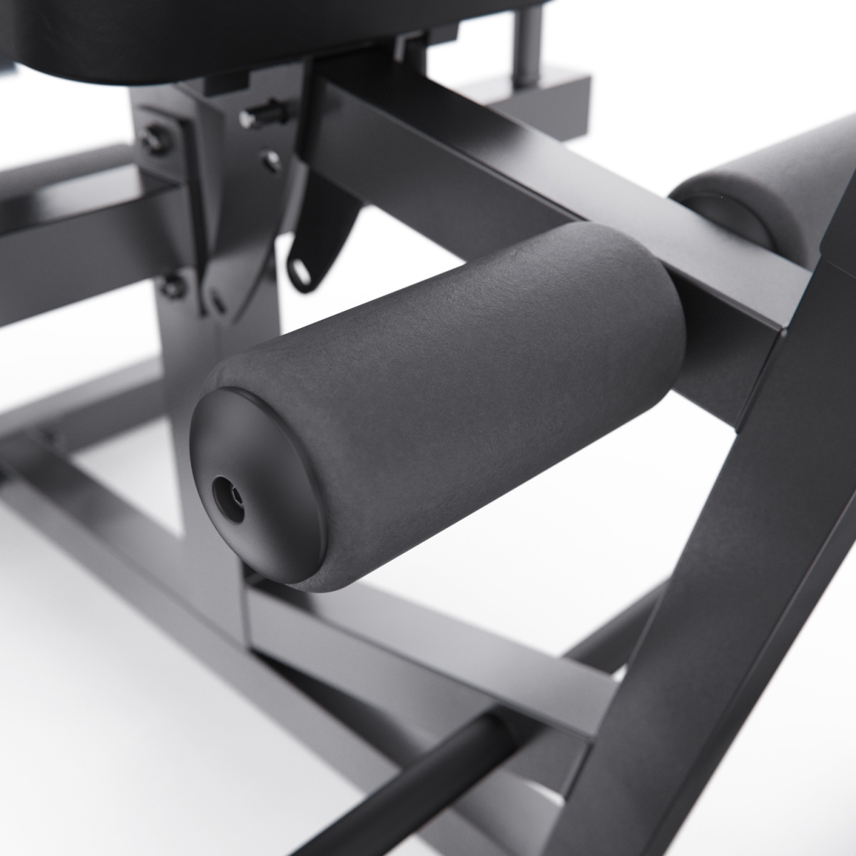 Индивидуальная настройка тренажера обеспечивает максимальный комфорт и эффективность. Большой диск для регулировки угла наклона руки и ноги имеет 24 уровня, а меньший диск для регулировки голеностопного ролика - 18 уровней. Регулируемые валики (6 уровней), спинка с регулировкой по длине и углу наклона, настраиваемое сиденье позволяют адаптировать тренажер под любые параметры пользователя. Это особенно важно для безопасного выполнения упражнений в домашних условиях.
