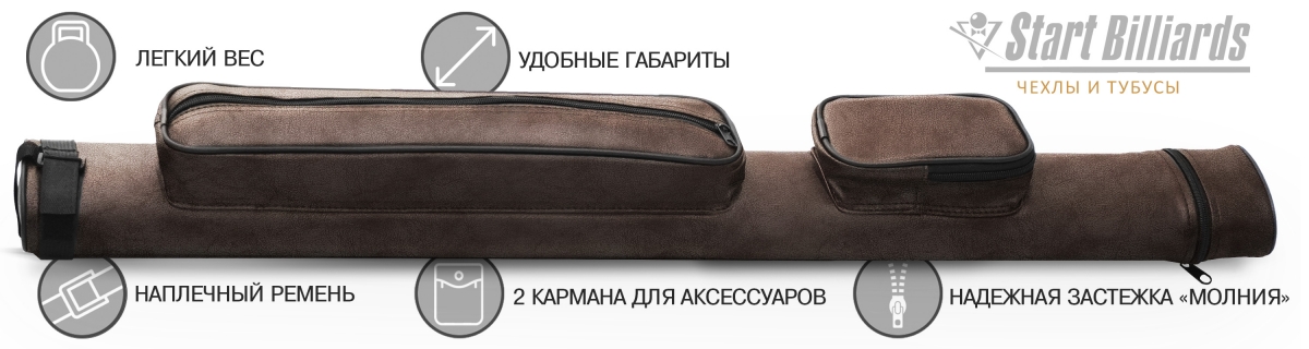 Внутреннее пространство организовано с помощью трех мягких перегородок, образующих четыре отдельные ячейки. Это позволяет безопасно транспортировать два двусоставных кия, полностью исключая контакт составных частей между собой.
