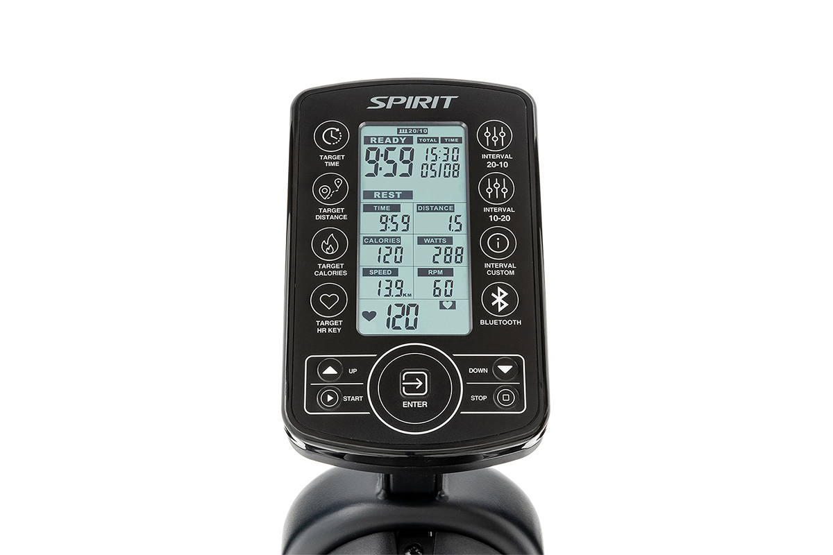 - Quick start, target time, target distance, target calories, target heart rate, interval 20-10, interval 10-20, interval custom