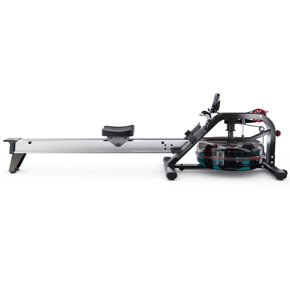 Кардиотренажёр использует водную систему нагрузки, что обеспечивает плавность хода и бесшумную работу. Транспортировочные ролики облегчают перемещение тренажёра при необходимости.